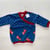 Amerikanischer Ausschnitt zum erleichterten an- und ausziehen. Zweigeteilter Pullover aus Jerseystoff. Die Nähte wurden mit einer Ziernaht versehen. Bündchen an Halsausschnitt und Ärmel.